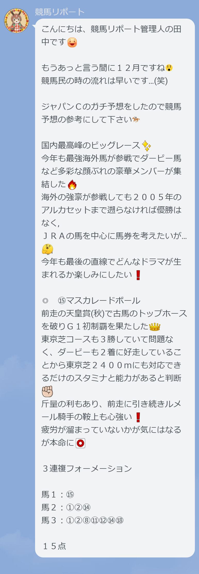 余談ですが日曜日に公開した管理人田中のLINE限定ガチ予想(ジャパンカップ3連複的中)はこの「うま遊勝」を参考に予想をしました。