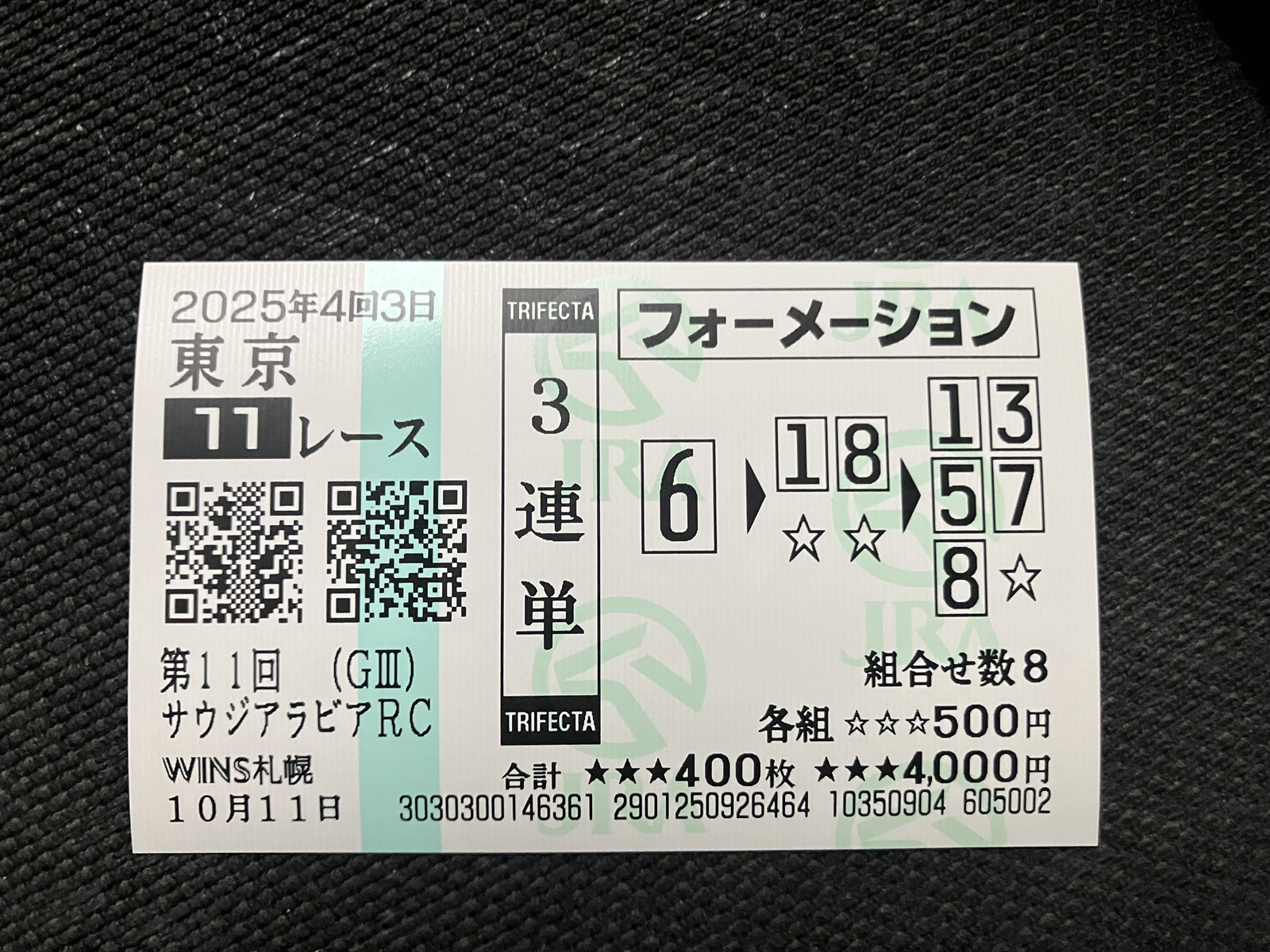 先週のサウジもバッチリ的中貰えて16万1650円払い戻し、今週も楽しみに予想待っています。