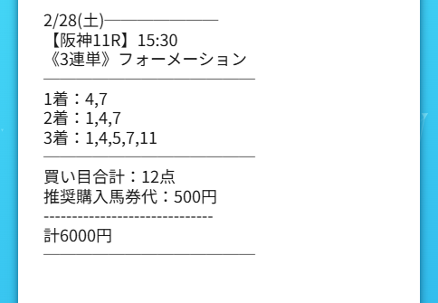 シンケイバの予想に野ていたので事前に人気馬の構想外、中穴勢の激走を見抜けました。