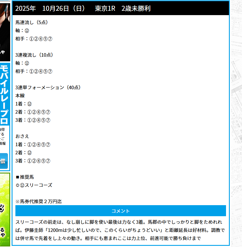 今日の無料情報で3連単239.6倍の的中貰えました!