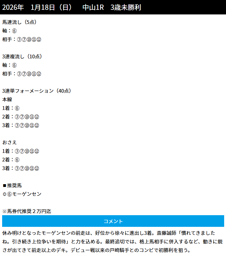 朝から18万2700円的中貰えました!因みに他馬券種も全部当たっています!